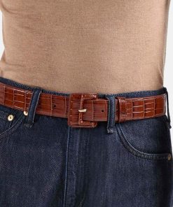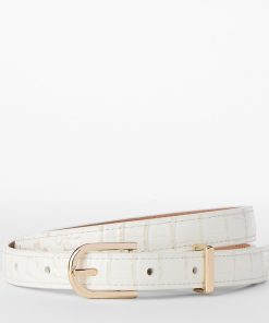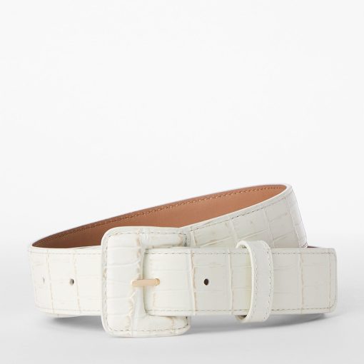 BRAHMIN Women’s Wide Covered Leather Buckle Belt | Sea Salt White Classic Vintage Croc