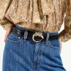 Add an element of creative self-expression to any outfit with this luxe leather belt that features a statement buckle. The croc metal buckle is a display of opulent artistry for every occasion.