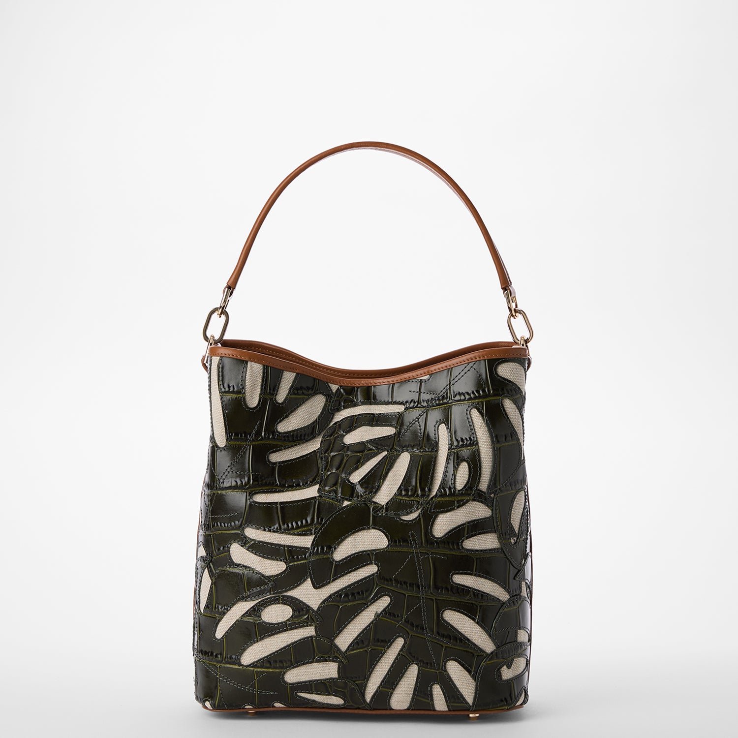 Featured in Cacti Green Abrigado, a bold botanical print in a blend of wearable greens. This novelty collection features cut out botanical leaves in a deep green flat croc on a neutral soft linen backing. A smooth leather trim in a warm tobacco lends versatility to the collection. The details showcase our commitment to craftsmanship and the color palette is rich and easy to style. Made with genuine leather.