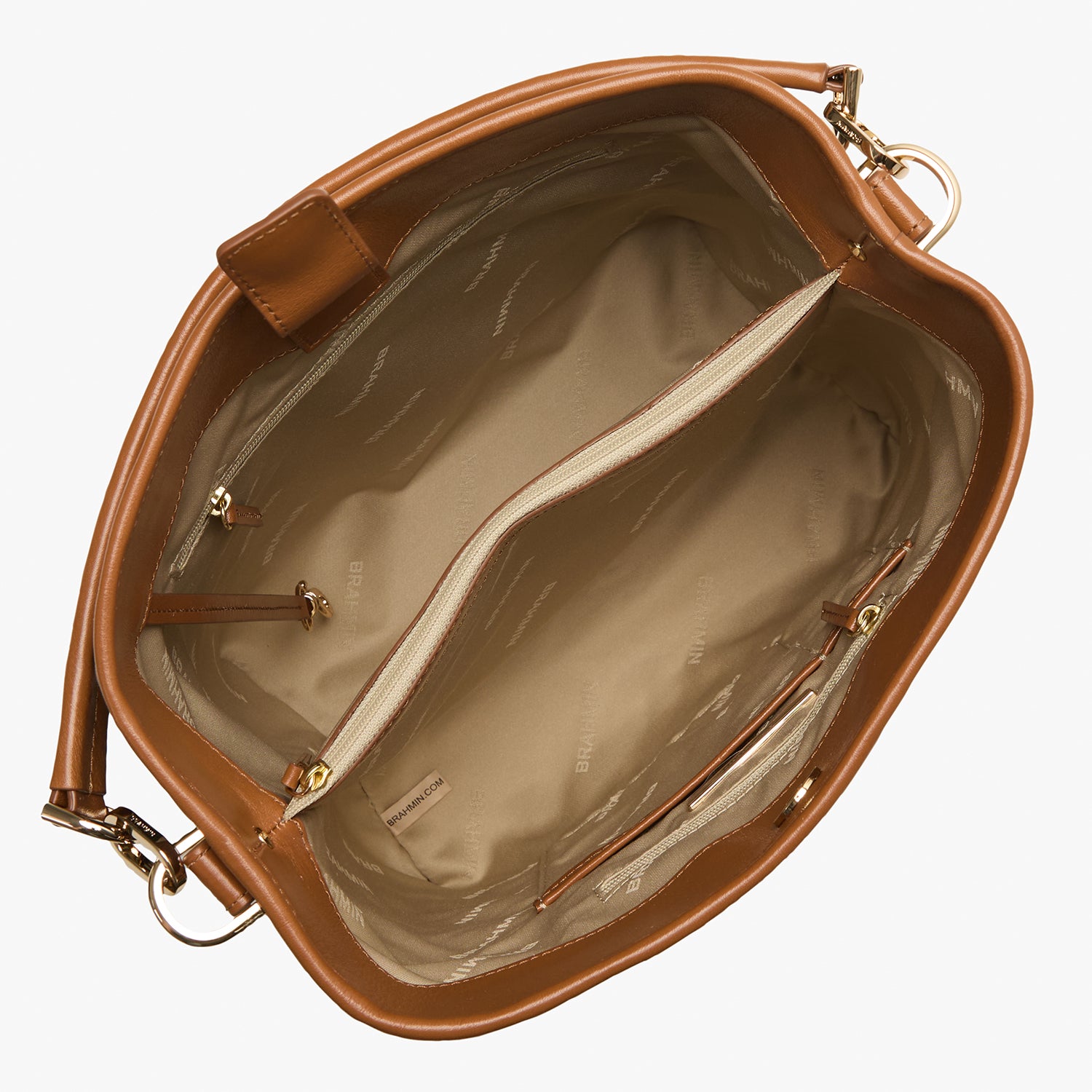 Celina is a trendy new twist on a bucket bag. This features a detachable shoulder strap and a rolled top handle. The spacious interior has added functionality with a jewelry pocket and key clip for keeping your most precious items secure. Stylish new hardware at the sides gives this added freshness with ease.