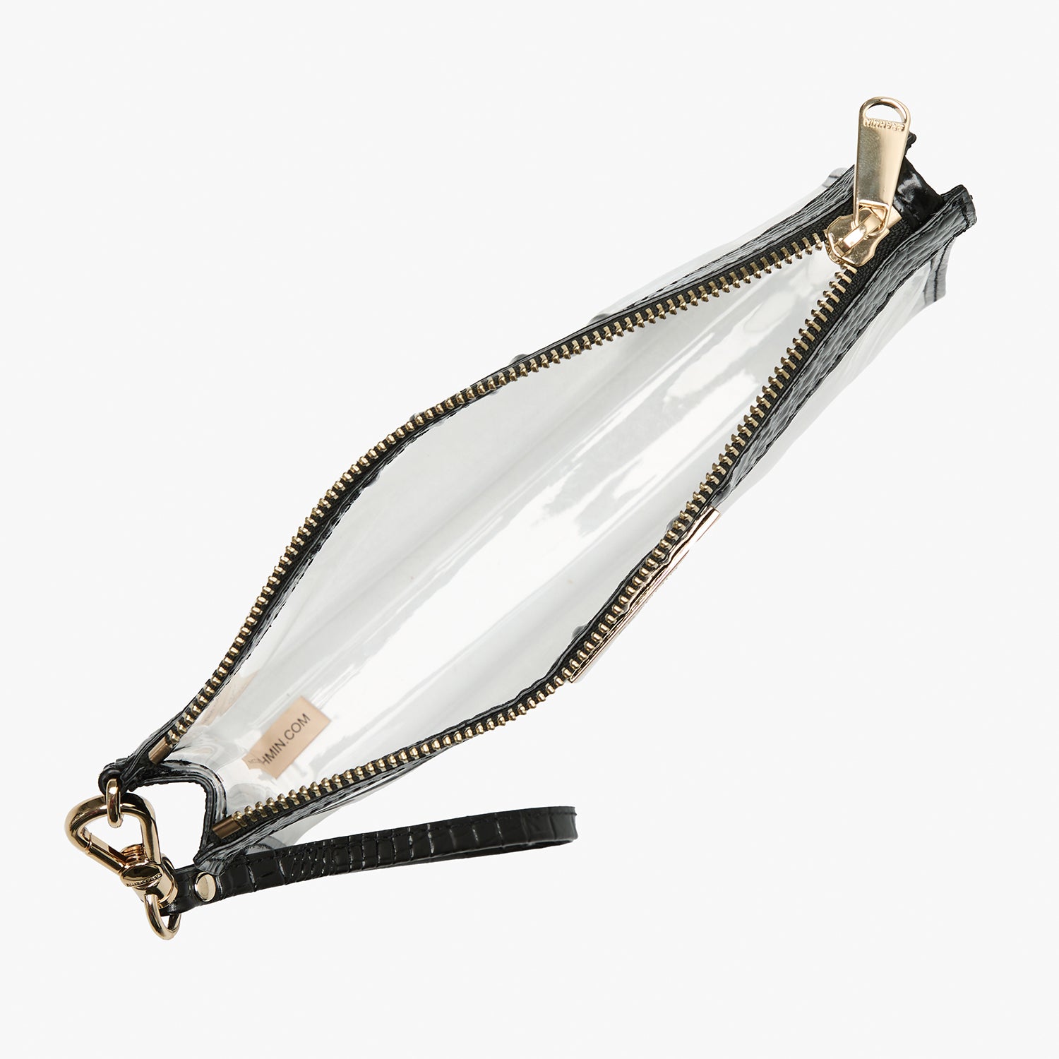 The Clarisse is a transparent wristlet that’s sure to become a staple in your wardrobe. This quart-sized pouch is the perfect companion for travel, concerts, and gym sessions. She’s also a stylish stadium bag for game day. Stash toothpaste, lotion, shampoo, conditioner, sprays, and other small travel essentials. A zip top closure keeps your items in place. Wear over the wrist for an effortless hands-free look.