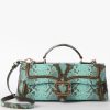 This satchel started with inspiration from a vintage Brahmin bag. We added fresh, modern twists and functional details like the turn lock closure, a back slide in pocket, and rolled handles. The bottom feet offer protection and ease.