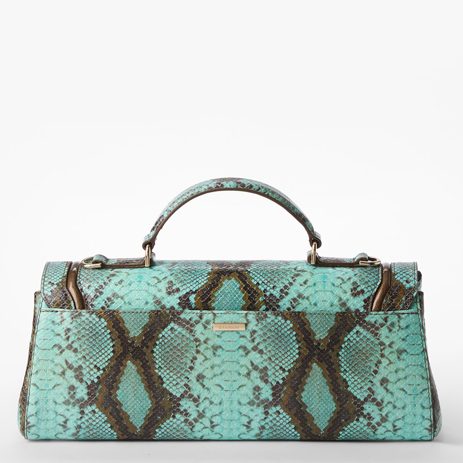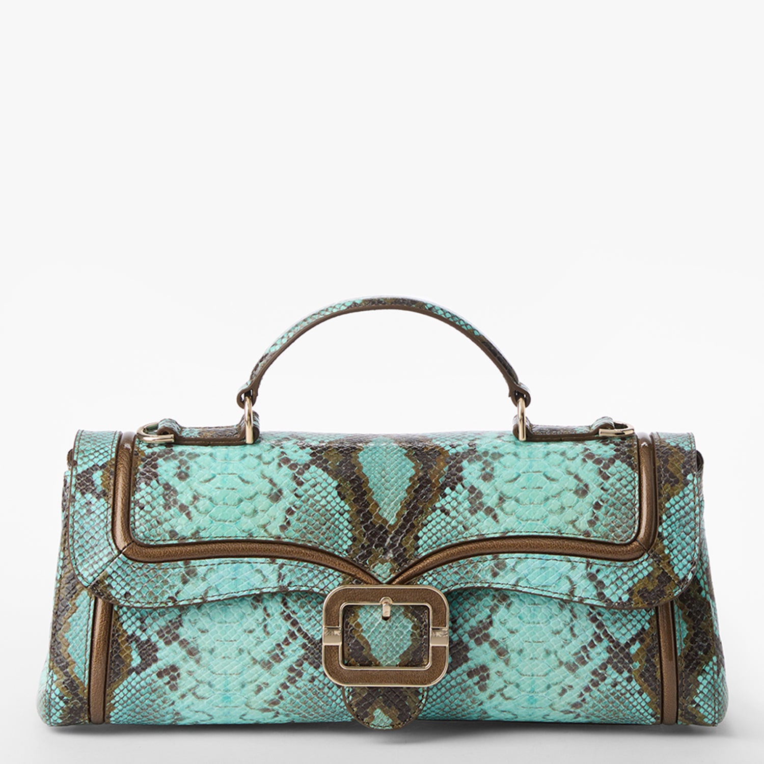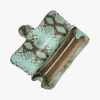 Featured in Turquoise Stone Tecoma, a natural turquoise snake. This patent snake print takes cool turquoise paired with a bronze inlay and a rich dark brown smooth leather strap. The color combination is distinctly Southwestern and effortlessly cool. Made with genuine leather.