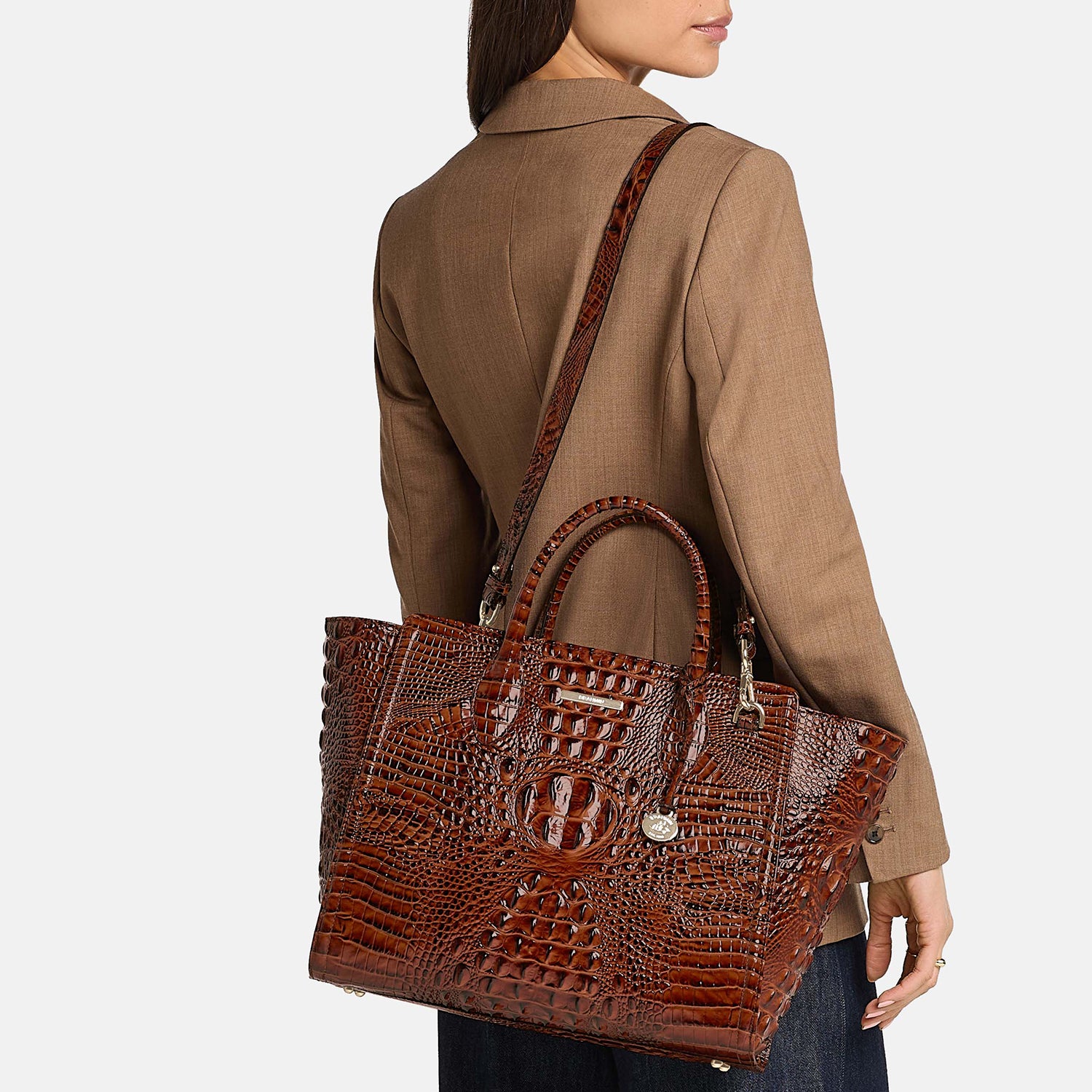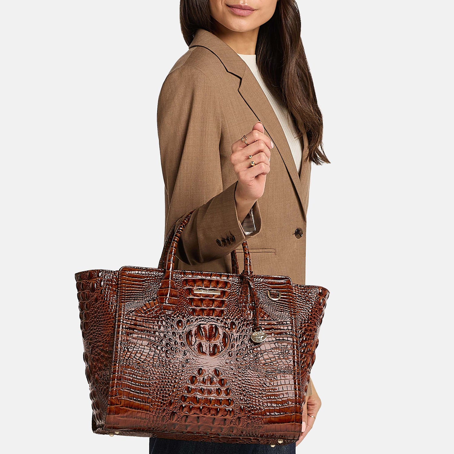 Megan is a chic and classic new tote featuring a zip top closure and comfortable rolled handles. The tailored silhouette is luxurious and feminine while the various interior compartments will keep you organized. The adjustable shoulder strap provides a hands-free alternative for days with longer to-do lists.