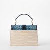 Featured in Mindful Grey Acoustic, a multi texture collection that combines cool blues with easy neutrals. A luxe flat grey in Mindful Grey is paired with a dark navy flat croc and a light blue suede trim with hints of metallic. Select styles feature a custom twisted metal buckle that exudes luxury or a metallic suede medallion charm hang-off. Made with genuine leather.