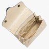 Small Hallie is a more compact version of our best-selling Hallie satchel. This ultra-chic silhouette features a flap turn lock closure for elevated ease. The extendable sides allow for easy opening and access to your essentials. The back slide in pocket is the perfect place for your phone or credit cards for quick transactions.