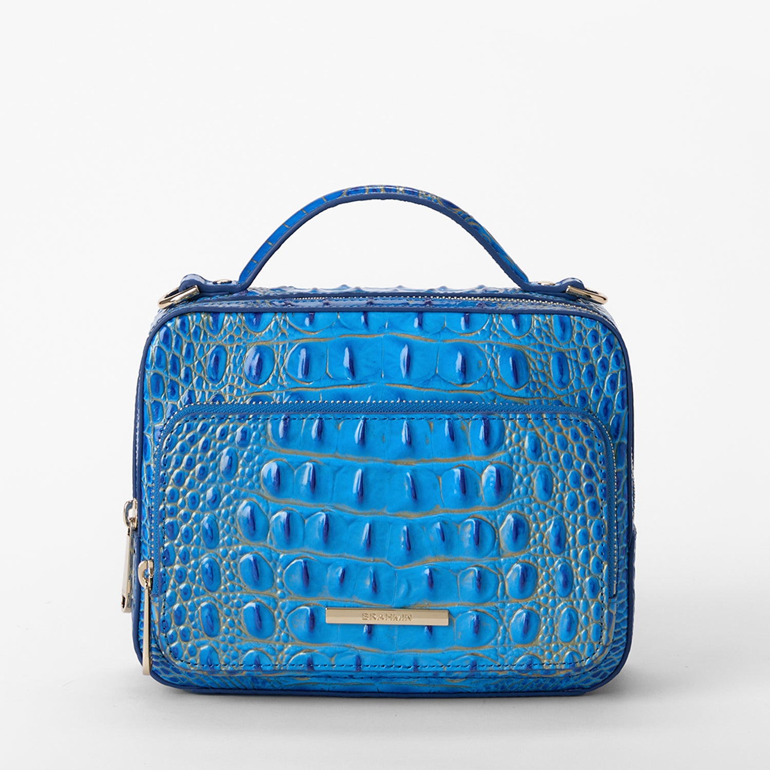 Featured in Electric Indigo Ombre Melbourne, a vivid blue ombre. Saturated bold blues are enlivened by a touch of shimmery gold that captures attention with its intensity. Made with genuine leather.