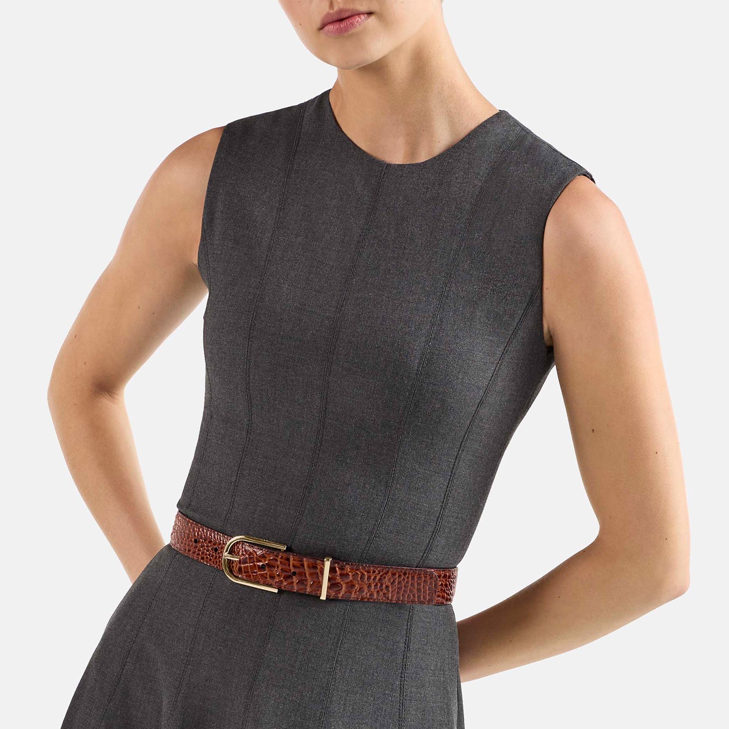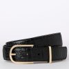 The Medium Leather Gold Buckle Belt is designed to add an elevated accent to any ensemble. The belt brings just a hint of color to your look. The embossed logo design is a Brahmin signature. Made with genuine leather.