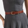 The Medium Leather Gold Buckle Belt is designed to add an elevated accent to any ensemble. The medium width belt brings colorful dimension to your look. The embossed logo design is a Brahmin signature. Made with genuine leather.