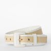 The Wide Covered Leather Buckle Belt is designed to add an elevated accent to any ensemble. This iteration of wide width belt features straw, our favorite texture of the season, and combines it with our iconic Melbourne leather. The embossed logo design is a Brahmin signature. Made with genuine leather.